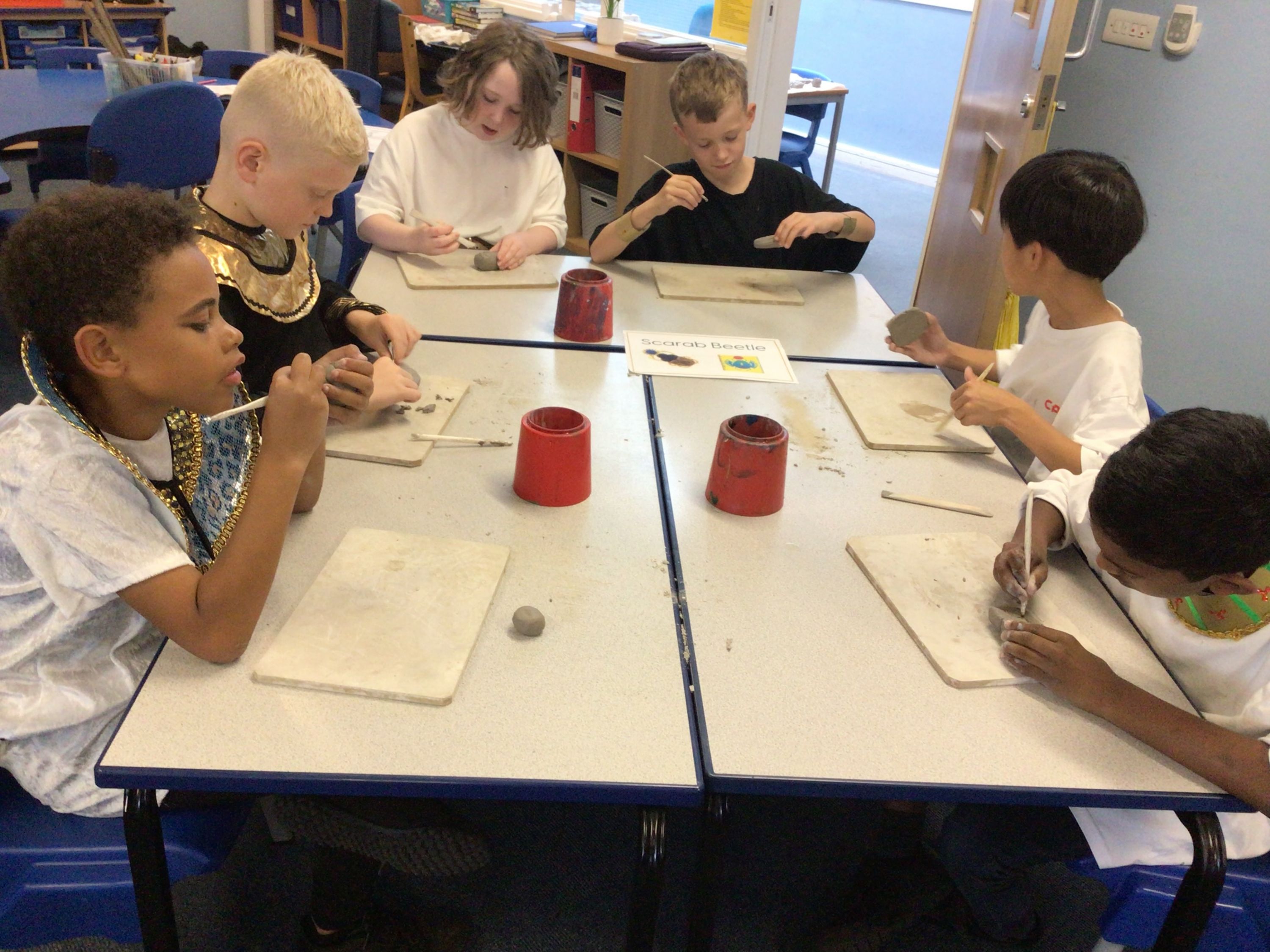 As well as masks they also got to construct and carve some amazing objects; Canopic Jars and scarab beetles. Learning new vocabulary as they let their artistic side flow.